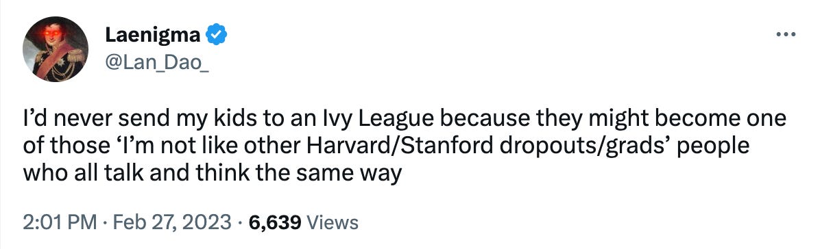 The second way in which we can fail to innovate, however, is a bit more subtle. Girard is saying that innovation also requires a mastery of the past’s achievements; we can’t simply ignore tradition, we have to understand what exists before we can innovate on top of it. Otherwise we will be, in Girard’s words, like a plant “with its roots up in the air.” All innovation has to occur within its proper context—to quote Tyler Cowen, “context is that which is scarce.”