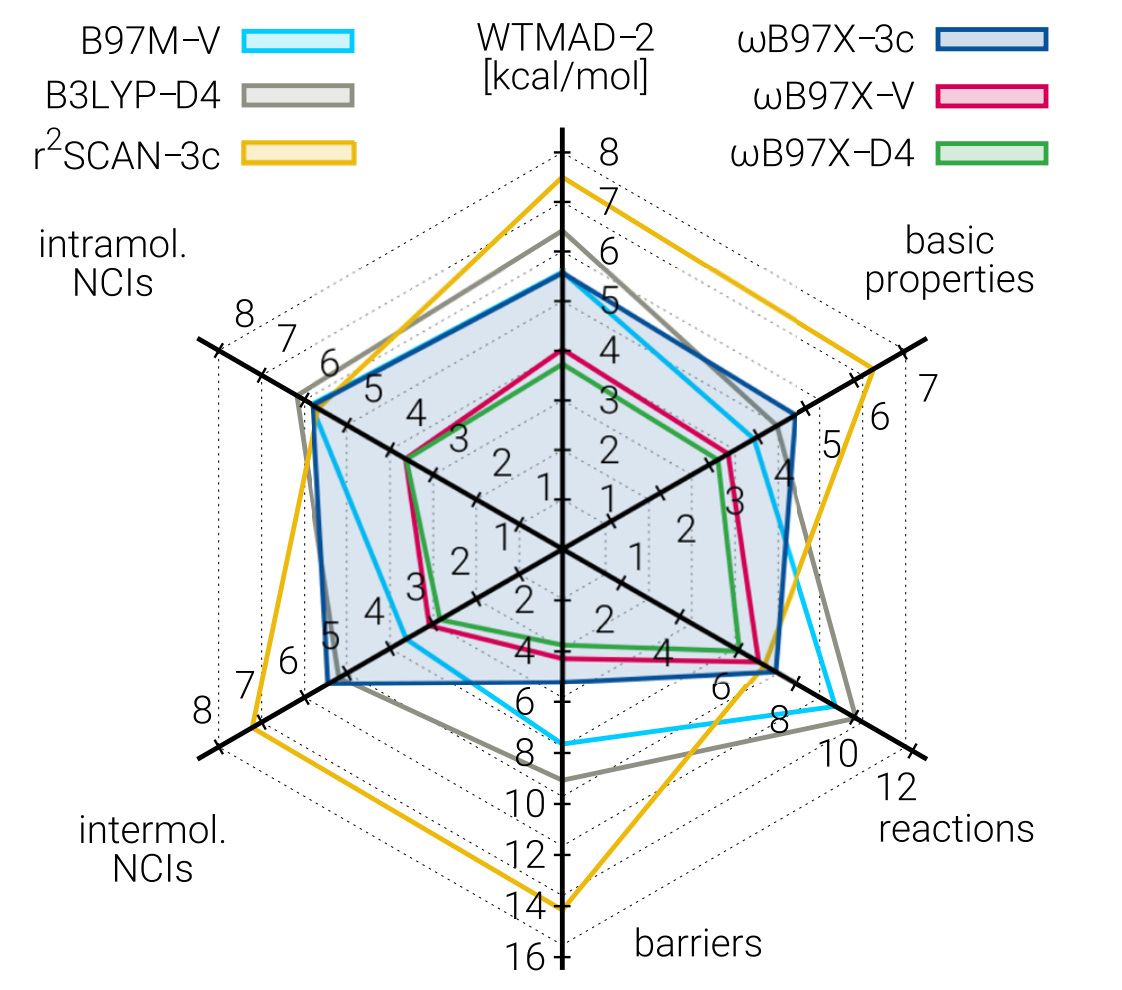 Interestingly, neither of the “weird” corrections (gCP or SRB) are employed for ωB97X-3c: it’s just an off-the-shelf unmodified functional, the now-standard D4 dispersion correction, and a specialized basis set. The authors acknowledge this: