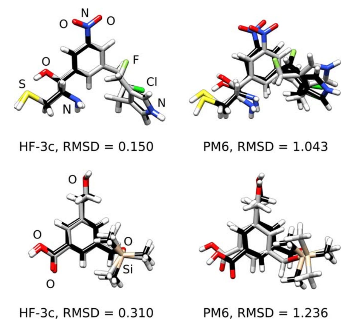 HF-3c is a lightweight Hartree–Fock method, using a minimal basis set derived from Huzinaga’s MINIS basis set. To ameliorate the issues that Hartree–Fock and a tiny basis set cause, the authors layer in three corrections: the D3 dispersion correction (with Becke–Johnson damping), their recent “gCP” geometric counterpoise correction for basis set incompleteness error, and an “SRB” short-range basis correction for electronegative elements.